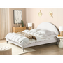 Cama Minimalista Bouclé Tapicería Poliéster Somier Cabecero Semicircular 180 X 200 Cm Blanco Margut - Blanco