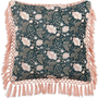 Cojín De Terciopelo Verde Azulado Rosa 45 X 45 Cm Algodón Floral Flecos Parrotia - Azul