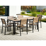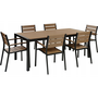 Conjunto De Jardín 6 Plazas De Metal Negro Madera Clara Plástica Mesa Sillas Vernio