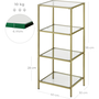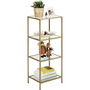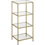 Estantería De 4 Niveles Con Estantes De Cristal, Estructura Robusta Y Montaje Fácil, Dorado
